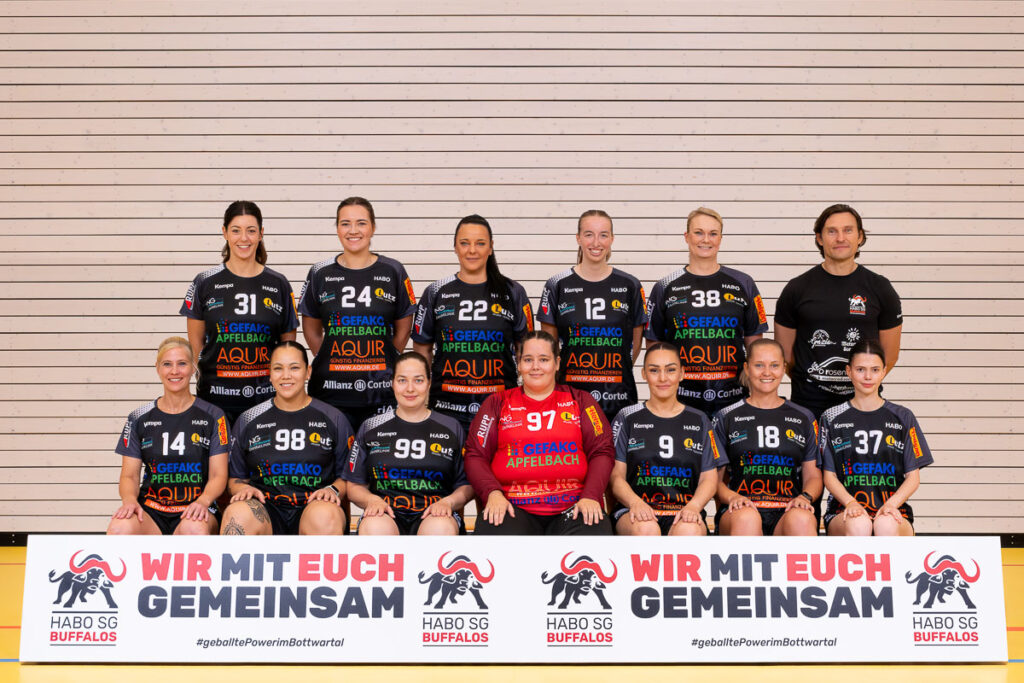 Hintere Reihe v.l.: Chiara Kunter, Annika Tschentscher, Lisa Bütner, Amelie Färber, Cathrin Tautz, Trainer Oleg Deiko Vordere Reihe v.l.: Sandra Lücke, Chada Pavan, Annika Gruber, Lena Schneider, Egzona Berisha, Jessica Eggert, Mia Grimmeisen Zum Team gehören auch: Nina Schwab